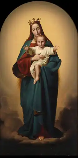 He began his studies in 1828, at the Berlin Art Academy, then moved to the Kunstakademie Düsseldorf, where he studied with Wilhelm von Schadow. From 1834 to 1835, he was a student in the Master Class. On behalf of the Kunstverein für die Rheinlande und Westfalen (Artists' Association), he created an altarpiece for the Church of St. Andreas, showing Mary as the Queen of Heaven. Following its unveiling in 1837, it became one of the region's most popular religious images and found its way into numerous Catholic prayer books as a small andachtsbilder (devotional image). A notable feature is its depiction of Jesus as a toddler, rather than an infant.