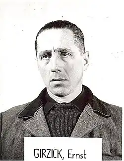Ernst Adolf Girzick (17 October 1911 – 4 March 1977) was an Austrian SS-Obersturmführer and an employee in Referat IV B4 of the Reich Security Main Office (RSHA). Girzick was responsible for the deportation of Jews to concentration and extermination camps. After the war, he was convicted of crimes against humanity in Vienna and sentenced to 15 years in prison.
