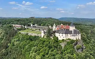 His most notable achievement was the reconstruction of the partially ruined Rosenburg Castle. The restorative work, which was partially based on representations from the Topographia Windhagiana (1673), was begun in 1859 and lasted for over two decades.[4] It was made partially accessible to the public before the end of the 19th century, and is still a major tourist attraction.