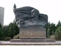 In the 1950s, a two-part East German film, Ernst Thälmann, was produced.[26] In 1972, Cuba named a small island, Cayo Ernesto Thaelmann, after him.[28] One of the main traffic arteries of Soviet Riga was named Ernsta Tēlmaņa iela after him on completion in 1981; however, soon after Latvia had regained independence in 1991 it was renamed Kārļa Ulmaņa gatve, after pre-World War II prime minister Kārlis Ulmanis. In Ho Chi Minh City, a highschool, THPT Ernst Thalmann (Ten-lơ-man) was named after him.[29] The VEB Ernst Thälmann Waffenfabrik, an East German weapons factory in Suhl (formerly Simson), was named after Thälmann (until 1990). In Ulaanbaatar, a primary school's namesake was given after Ernst Thälmann, which is still in operation. The British Communist composer and activist Cornelius Cardew named his Thälmann Variations for piano in Thälmann's memory.[30]