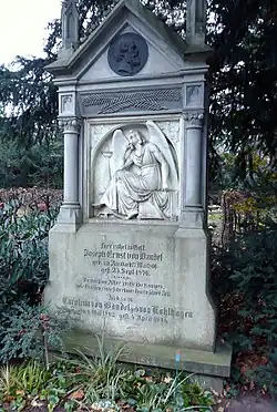 However, Bandel had been weakened by the years of work on the exposed hilltop and by kidney disease. He opened a studio in Hanover and in 1876 went on another trip to Italy. He died on the return trip at his half-brother's estate at Neudegg near Donauwörth on 25 September 1876.[2]: 64 He is buried at the Stadtfriedhof Engesohde at Hanover.