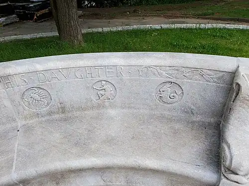 - Zodiac signs and inscription on bench