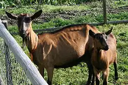 The Erzgebirge (German: Erzgebirgsziege) is a breed of goat native to the Saxony region of Germany.[1][2] Erzgebirge goats are polled, and have a reddish-brown coat with black stripes on the face, back, and legs.[3] Primarily used for milking, the breed is critically endangered.[4][5]