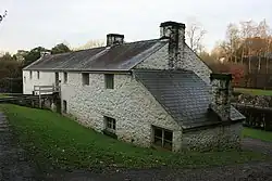 The mill was built in around 1760, close to a farm of the same name near the small town of Llanwrtyd in Powys.[1] After being enlarged during the 19th century, when the spinning jack, made by John Davies of Llanbrynmair in about 1830 and thought to be the only one of its age and kind still in use, was installed, along with carding engines purchased from a mill in Yorkshire.[2] The mill eventually closed down in 1947 and was relocated and rebuilt at St Fagans in 1952.[1]