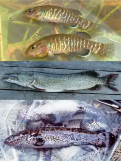 Esocidae is a family of ray-finned fish in the order Salmoniformes, which contains pike, pickerel, and mudminnows.[1] While the family traditionally only contained the genus Esox, recent genetic and paleontological research have recovered Novumbra and Dallia as members of the family Esocidae, being closer related to Esox than Umbra. Fossil specimens from the Mesozoic in North America have been assigned as two additional genera in this family, although they may actually be more basal.[2]