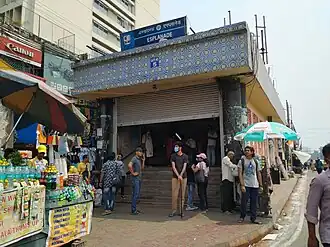 Esplanade is an underground interchange metro station on the North–South corridor of the Blue Line and on the East–West corridor of the Green Line of Kolkata Metro.[2][3][4] This station, which is the biggest in the city, is located in the Esplanade neighbourhood of Kolkata, at the northern end of Chowringhee Road/Jawaharlal Nehru Road near New Market and the Oberoi Grand hotel. It opened in 1984 as part of what is now the Blue Line. The station is re-designed to be the largest station of the metro system and will function as the interchange station between Blue, Green and Purple Lines.[8] The Line-2 complex, built below the Line-1 complex (requiring modification to Line-1 station) was completed and inaugurated on 6 March 2024, with connections to Sealdah on 22 August 2025.[5][8][9][10][7] The Line-2 complex is designed with world class amenities and murals that depict the culture, tradition, sports, monuments, important structures, etc. in them.[11][12][13]