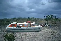 On February 26, 1971, an expedition set off by hovercraft from Manaus in Brazil where the Amazon River is joined by the Rio Negro. They followed the Negro upstream to where it is joined by the Rio Ireng that forms the border between Brazil and Guyana. After following the Ireng for a few tens of kilometers they hovered about 40 miles across the North Savannas of Guyana to the Rupununi River, which they followed to its confluence with the Essequibo River at Apoteri. The Essequibo was then traversed down to its mouth near Georgetown. The primary purpose of the expedition was filming for the BBC series "The World About Us" with the episode "The Forbidden Route" broadcast in November 1971. The secondary purpose was to demonstrate the abilities of a new type of small hovercraft, the Cushioncraft CC7, thereby promoting sales of this British invention. The expedition team comprised Bob Saunders (BBC producer and team leader), Tommy Tomlinson (CC7 pilot), Jevan Berrangé (navigator and logistics consultant), Len Chrisophers (hovercraft engineer), Peter Smith (sound recordist), and Tony Morrison (cameraman). Fuel dumps for the hovercraft were laid down at intervals ahead of the expedition, by boat on the Rio Negro, by plane in the North Savannas and by float-plane on the Essequibo. As there were no reliable maps of the route, navigation in Guyana was done by 1:60,000 scale aerial photographs and by scouting rapids in a motorised inflatable dinghy ahead of the CC7. This was the first expedition to travel by river, land, and sea from Manaus to Georgetown, a total distance of about 1,000 miles (1,600 km).[30]