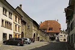 Estavayer-le-Lac (French: [ɛstavaje l(ə) lak];[2] Arpitan: Estavalyér-le-Lèc, locally Thavalyi-le-Lé[3] [θavaˈʎi lə ˈle] ⓘ) is a historical town and former Swiss municipality of the canton of Fribourg, situated on the south shore of Lake Neuchâtel. Estavayer-le-Lac is located between Yverdon and Bern. It is the capital of the district of Broye. The municipality of Font merged on 1 January 2012 into the municipality of Estavayer-le-Lac.[4] On 1 January 2017 Bussy, Morens, Murist, Rueyres-les-Prés, Vernay and Vuissens merged into the new municipality of Estavayer.