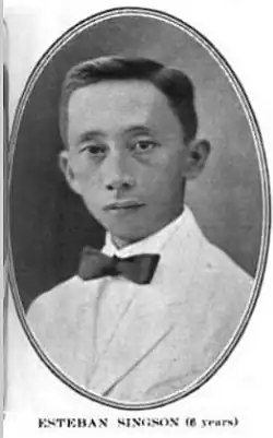 Esteban Singson was born on August 13, 1884, in Calbiga, Samar. He pursued a Bachelor of Arts degree at the Colegio-Seminario de San Carlos in Cebu before moving to the Colegio de San Juan de Letran where he graduated in 1903, with the designation sobresaliente (excellent). Singson then studied law at the University of Santo Tomas and in 1909 was admitted to the Philippine Bar. He thereafter worked as a lawyer in his native Samar and Leyte.[1]