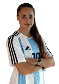 Banini has previously spent four seasons with Colo-Colo of the Chilean women's football championship, two seasons with the Spirit, and a season with Valencia.[3][4] Banini was previously a member of the Argentine women's national team, captaining the team in their second ever World Cup campaign in 2019.[5] She is often referred to as the female equivalent of male football star Lionel Messi and the Marta of Argentina.[6][7][8][9]