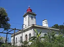 The Esteiro Lighthouse (Portuguese: Farol do Esteiro) is an active Portuguese lighthouse located at Oeiras, about 10 km west of the centre of Lisbon, in parkland that also contains the National Stadium of Portugal.[1] It is a rectangular masonry tower covered with white tiles. The south side has two red horizontal bands that serve as identification during daylight.[2]