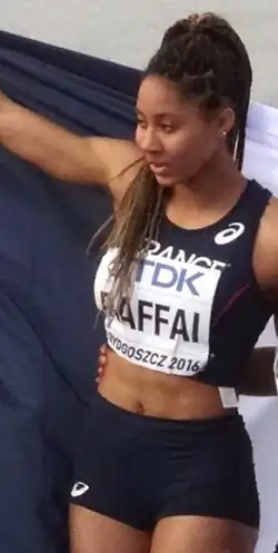 Estelle Raffai (born 6 February 1998 in Longjumeau) is a French sprinter competing primarily in the 200 metres.[2] She represented her country at the 2017 World Championships reaching the semifinals. In addition, she won two medals at the 2016 World U20 Championships.