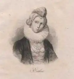 According to the legend, Esterka was the daughter of a poor tailor from Opoczno named Rafael. Her beauty[4] and intelligence were legendary. She was later installed in the royal palace of Lobzovo near Krakow.[5]