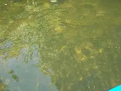 The water quality increases dramatically with the distance from the drainage outlets and surrounding houses. Since the majority of development occurs on the banks of the eastern parts of the river the water quality decreases inland.[7]