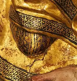 Estofado (Spanish: [estoˈfaðo]) is an artistic technique that imitates the appearance of gold brocade. The term comes from the Italian "stoffa" (fabric) in reference to the fine textiles it seeks to reproduce. Its origin is found in the Gothic period. Its use became more popular during the Renaissance and Baroque periods, particularly in Spain and its cultural sphere of influence, where it became prevalent. While estofado is mostly used for wooden sculpture, either statuary in the round or reliefs, it can also be used on other mediums, such as stone sculptures or panel paintings.