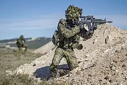 The Soviet Union began Russification, with hundreds of thousands of Russians and people of other Soviet nationalities being induced to settle in Estonia, which eventually threatened to turn Estonians into a minority in their own land.[140] In 1945 Estonians formed 97% of the population, but by 1989 their share of the population had fallen to 62%.[141] The military presence was pervasive, with closed military zones occupying around one-fifth of the Estonian land and the entire surrounding sea. Access to coastal areas required permits, rendering the Estonian people physically isolated from the world outside the USSR.[142][143] Economically, heavy industry was strongly prioritised, but this did not improve the well-being of the local population, and caused massive environmental damage through pollution.[144] Living standards under the Soviet occupation kept falling further behind nearby independent Finland.[140]