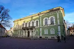 The Estonian Knighthood House (Estonian: Eestimaa rüütelkonna hoone, German: Haus der Estländischen Ritterschaft) is a building in Toompea, the upper part of Vanalinn, the historic inner town of Tallinn, the capital of Estonia. Its address is Kiriku plats (Dome Square) 1. The Dome Church is situated at the same square.