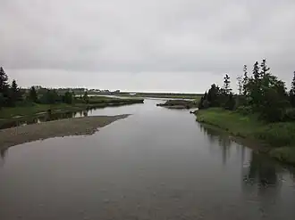The first developments of the estuary were carried out from the end of the 19th century and during the 1960s, with the construction of the timber flotation channel feeding a sawmill. Subsequently, the construction of the causeway of the route 132, port facilities and a marina, greatly disrupted water circulation as well as the lagoon sedimentation processes. To remedy this, the causeway was pierced with a culvert and the jetty, connecting route 132 to the Pointe de Beaubassin, was dismantled.[gouv 2]