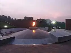 The Eternal Flame also known as Shikha Chironton (Bengali: শিখা চিরন্তন) is a historical landmarks of Bangladesh. The flame was created to keep alive the memory of the martyrs who lost their lives in the Liberation War of Bangladesh and the defeat of the Pakistani Forces. It was jointly opened on March 26, 1997, on the occasion of Bangladesh independence day by then Prime minister of Bangladesh Sheikh Hasina, the President of South Africa Nelson Mandela, the President of Palestine Yasir Arafat and the President of Turkiye Süleyman Demirel.[1][2]