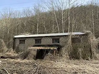 Ethel Coal Company, formed in 1906, operated No. 1 and No. 2 mines from 1907 to 1916 in Ethel Hollow.[4] Between 1907 and 1916, the company constructed dwelling houses in Ethel Hollow. The company built the Ethel No. 1 Company Store; its ruins are visible today. During this time, about 1914, Italian stonemasons constructed the Ethel Coal Company Supply Building, one of the town's few remaining landmarks. Ethel Coal Company employed 184 men in 1915; nearly half of the labor force was immigrants, with the largest group being from Hungary. Italians were also employed and 1/6 of the work force were African-Americans. Ethel Coal Company operated No. 1, No. 2, and No. 3 in 1917.