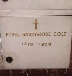Ethel Barrymore died of cardiovascular disease on June 18, 1959, at her home in Hollywood, after having lived for many years with a heart condition. She was less than two months shy of her 80th birthday. She was entombed at Calvary Cemetery. The Ethel Barrymore Theatre in New York City is named for her.[26]