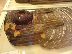 Padi has been restored twice before: once in the 1980s and again in 2002. Salt deposits that build up from the embalming elixir have formed on the exposed portions of Padi's face and head need to be removed periodically.[27] The restoration also included replacing the old grass and wood case with the current climate-controlled enclosure.[29]