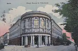 The museum's first building in the center of Berlin on Königgrätzer Straße (now Stresemannstraße at the corner with Niederkirchnerstraße) was already too small to accommodate the collections when it opened in 1886.[3] The situation deteriorated further in the last years of the 19th century, as the collections expanded rapidly because of increased institutional support for ethnology and the growth of the German overseas colonial empire after the Berlin Conference.