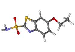 Ethoxzolamide (alternatively known as ethoxyzolamide) is a sulfonamide medication that functions as a carbonic anhydrase inhibitor.[1] It is used in the treatment of glaucoma and duodenal ulcers, and as a diuretic. It may also be used in the treatment of some forms of epilepsy.