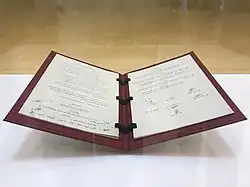 The Etihad Museum (Arabic: متحف الاتحاد), historically called the Union House (Arabic: دار الاتحاد) and formerly as the al-Diyafah Palace and the Jumeirah Guesthouse,[1] is a museum in Dubai, United Arab Emirates that collects, preserves, and displays the heritage of the United Arab Emirates in the areas of social, political, cultural, scientific, and military history. It holds everything from old passports to personal artifacts of the rulers of United Arab Emirates.[2] The historic signing of the Constitution of the United Arab Emirates, the raising of the first UAE flag, and the formation of the United Arab Emirates as a country on 2 December 1971 took place within the area that forms the museum today. The museum is designed as a document to signify the signing of the UAE constitution. It costs 25 AED (6.81 USD) for an adult to visit it.