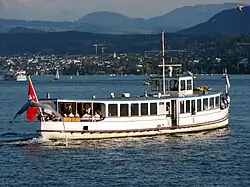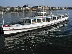 The MS Etzel is a preserved motor ship on Lake Zürich in Switzerland. She was built for the Zürichsee-Schifffahrtsgesellschaft (Lake Zurich Navigation Company) in 1934, and operated for them until she was retired in 2001. She is now owned and operated by the Etzel society, a society specifically created to preserve her.[1]
