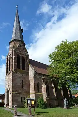 The one church in the community was built around the end of the 19th century. The single-nave edifice is in neo-Gothic style. It serves the Reformed (Calvinist) congregation of the community.
