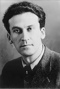 Eugen (Jenő) Fried was born on 13 March 1900 in Trnava, in what is now eastern Slovakia, to a family of Jewish small traders. He was a gifted student, and graduated from secondary school in 1917.[1] He started to study chemistry at the University of Budapest but was unable to graduate due to the collapse of Austria-Hungary in 1918.[2] He joined the Bolsheviks and from March to July 1919 participated in the revolution of Béla Kun that established the Hungarian Soviet Republic. When the republic collapsed he took refuge in the new country of Czechoslovakia.[1]