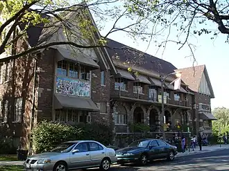 By 1930 nearly half of Albany Park's population was Jewish, about 23,000 people.[5] Much of Albany Park's Jewish population was concentrated in a small area bounded by the Chicago River (east), Pulaski Road (west), Foster Avenue (north) and Montrose Avenue (south).[5] Eugene Field Park, along with Bohemian National Cemetery, was one of the several open tracts of land in that area.[5] As such, Jewish residents of Albany Park would often use Eugene Field Park as a gathering point. The elderly would congregate at the park to play pinochle.[5] For the younger generation, dances at Eugene Field Park's field house were a common event.[5] Many Jewish organizations utilized Eugene Field Park's field house during the Depression years. Some of those groups include: Congregation B'nai Sholom, the Albany Park Hadassah, the Kimball Bryn Mawr Hebrew School, and the National Home for Jewish Children of Denver.[6] Additionally, Christian groups used the facilities at the field house as well. Groups such as Ainsile Baptist Church, the Albany Park Presbyterian Church, and others used the field house throughout the 1930s.[6] Other, non-religious, groups used the park's field house during this time too.[6] For example, the 39th Ward Civic Club and Chicago Public Library; and the building was sometimes used by needy families trying to raise funds or by groups holding a benefit such as the Albany Park Employees Association.[6]