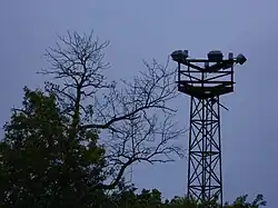 Eugene Field Park long featured a 60-foot flood light tower. The light tower was installed in 1937 by the Chicago Park District to provide lighting to recreation facilities northwest of the field house and south of the river. By 2025, the tower had had considerable rust damage and was removed after being blown over during a storm.[2] Until the 1980s there was a flag pole and World War I memorial in the park to the west of the flood light tower. After it fell into disrepair the park district demolished the memorial.[2]
