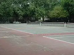 The park's tennis courts have been in the same location since c. 1925–1930.[13] North of the five tennis courts is a playground.[7] Historically, there were two playgrounds divided by an oval path; north of these areas were other recreation features, including a wading pool.[13] During the 1950s the Chicago Park District renovated the playground area and added additional features including an open shelter, a sand court, wading pool and a basketball court.[13] Between 1970 and 1980 the wading pool was converted into a spray feature.[13] The playground equipment and area has had additional updates in the ensuing years.[13]