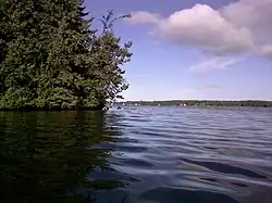 By 1950, the reservoir had become a vacation destination, and cottages ringed its shores. However, in 1960, serious cracks were discovered in one of the 45-year-old dams. The Commission believed repairs, estimated at more than $500,000, would be uneconomical, and instead, lowered the level of the reservoir by 4 metres (13 ft) to relieve pressure on the dam. This left cottages more than 15 metres (49 ft) from the new shoreline, and the resulting protest by cottagers became a political issue, raised in the provincial legislature by the Opposition.[6] In response, a new earthen dam was built in 1962, enabling the reservoir to be raised to its former level.