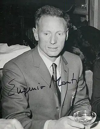 Eugenio Monti (23 January 1928 – 1 December 2003) was an Italian bobsledder and alpine skier.[1] He is one of the most successful athletes in the history of the bobsleigh, with ten World championship medals (of which nine gold) and 6 Olympic medals including two golds. He is known also for his acts of sportsmanship during the 1964 Winter Olympics in Innsbruck, Austria, which made him the first athlete ever to receive the Pierre de Coubertin World Trophy.[2][3][4]