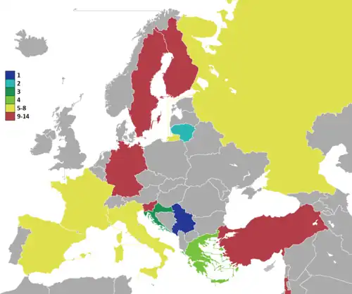 | Qualified through Qualifying Round | 21 June 1993 – 16 November 1994 | 10 | |