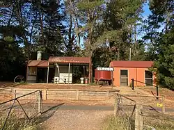 Eurobin railway station was located on the Bright line serving the town of Eurobin in Victoria. It opened on 17 October 1890 and closed on 30 November 1983.[1] A new shelter and toilet buildings have been constructed on the site of the former station in the shape of a steam train, as part of the Murray to the Mountains Rail Trail. The station was situated 2km east of St Clement's Church Eurobin and directly opposite Eurobin Presbyterian Church.