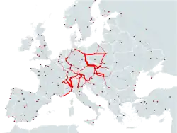 EuroCity (EC) is an international train category and brand for European inter-city trains that cross international borders and meet criteria covering comfort, speed, food service, and cleanliness.[1][2] Each EC train is operated by more than one European Union or Swiss rail company, under a multilateral co-operative arrangement, and all EC trains link important European cities with each other.[3]