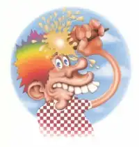 Europe '72, like other Grateful Dead cover art, was designed by Alton Kelley and Stanley Mouse (known as Kelly/Mouse studios). The album was originally published as a triple-LP with an accompanying booklet. In contrast to the band's previous albums, the artwork is set against white, mostly-empty panels of (originally) a triple gatefold sleeve. The front cover shows a large "Truckin'" foot stepping across the Atlantic to Europe. The back cover depicts the corresponding "Truckin' Fool" smashing an ice cream cone against his forehead. Airborne drops of ice cream are drawn as a text ambigram, indistinctly spelling the word "LIVE".[23]