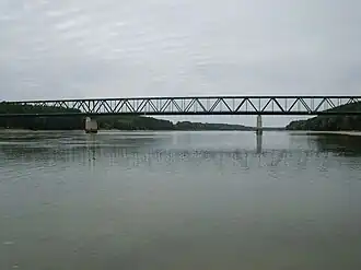 ![]() Bridge carrying E575 over the Danube (international border) between Medveďov, Slovakia, and Vámosszabadi, Hungary | |