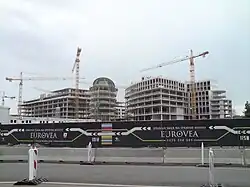 Eurovea City is a premium mixed-use building complex under construction in Bratislava, Slovakia. The complex is located in the Old Town, between the Old Bridge and the Apollo Bridge, bordered by Landererova street from the north and the river Danube from the south. Eurovea City connects the Bratislava Riverfront with the city center and offers stores and leisure time facilities while housing businesses, apartments and a hotel.