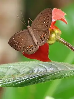 - ^ DeVries, P. J., Chacon, I. A., & Murray, D. (1992). Toward a better understanding of host use and biodiversity in riodinid butterflies(Lepidoptera). Journal of Research on the Lepidoptera, 31(1), 103-126.