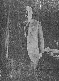 When dictatorship was crumbling Echave-Sustaeta politically remained in the shadow of his brother; a 1930 manifesto, issued by Carlist executive, in name of the Alavese branch was signed by Antonio.[140] However, in December 1931 both brothers were members of Junta Provincial of Comunión Tradicionalista.[141] In mid-1933 it was Eustaquio who rose to president of Junta Provincial,[142] but in 1934 he was referred to as vicepresidente.[143] There are sporadic notes of him speaking at Carlist rallies in Álava, e.g. in 1933 in Laguardia[144] and in 1934 again in Laguardia.[145] A historian underlines that in the mid-1930s both brothers were among "personalidades de gran ascendiente en la sociedad alavesa",[146] though within Carlist structures in Álava the dominant role was rather assumed by the Oriol clan, with José Luis Oriol holding the Cortes mandate and representing the province in the party Junta Nacional.[147] He was engaged in works on the joint vasco-navarrese autonomy statute.[148]