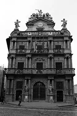 In 1905 Echave-Sustaeta was elected to the Pamplonese city council.[87] Thanks to numerous Carlist representation in the corporation he was voted teniente de alcalde, one of a few deputy mayors,[88] and served in Comisión de Fomento.[89] He proved a rather restless and combative member; in 1906 he protested a motion to commemorate liberal politicians Castelar, Pi y Margall and Sagasta, refused to budge, was fined, paid at the spot, left the room and took other Carlists councilors with him, breaking up the entire session.[90] As member of the council in 1906 he took part in public rallies against governmental anti-clerical regulations, especially the so-called Ley del candado.[91] It is not clear when his term expired.