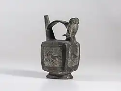 The Pre-Columbian art|Pre-Columbian collection is mainly composed by objects produced by civilizations living in present-day Peru, mainly the Nazca and the Chimú. From Nazca, it conserves anthropomorphic polychrome pottery vases decorated with fantastic animals, as well as fragments of wool and cotton fabric. From Chimu, it includes modeled pottery, such as water-canteens, twinned bottles and whistling vases.[16]