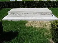 General Evangeline Booth lived in Hartsdale, New York, until her death at the age of 84 from arteriosclerosis. She is interred in Kensico Cemetery, Valhalla, Mount Pleasant, New York near White Plains, New York. Her home, the Evangeline Booth House, now known as St. Andrew's Episcopal Church, was added to the National Register of Historic Places in 2011.[6]
