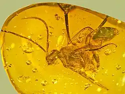 - ^ a b c d Poinar, George (2020). "Ensign wasps (Hymenoptera: Evaniidae) in Dominican and Mexican amber". Historical Biology. 33 (11): 2560–2576. doi:10.1080/08912963.2020.1818075. S2CID 224944593.