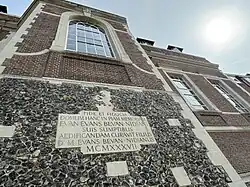 In the courtyard of the London House of Goodenough College, a commemorative plaque mentions the building's history. Nidianus refers to Neath, the place in Wales from which the family came; close by was the Roman fort Nidum.[3]